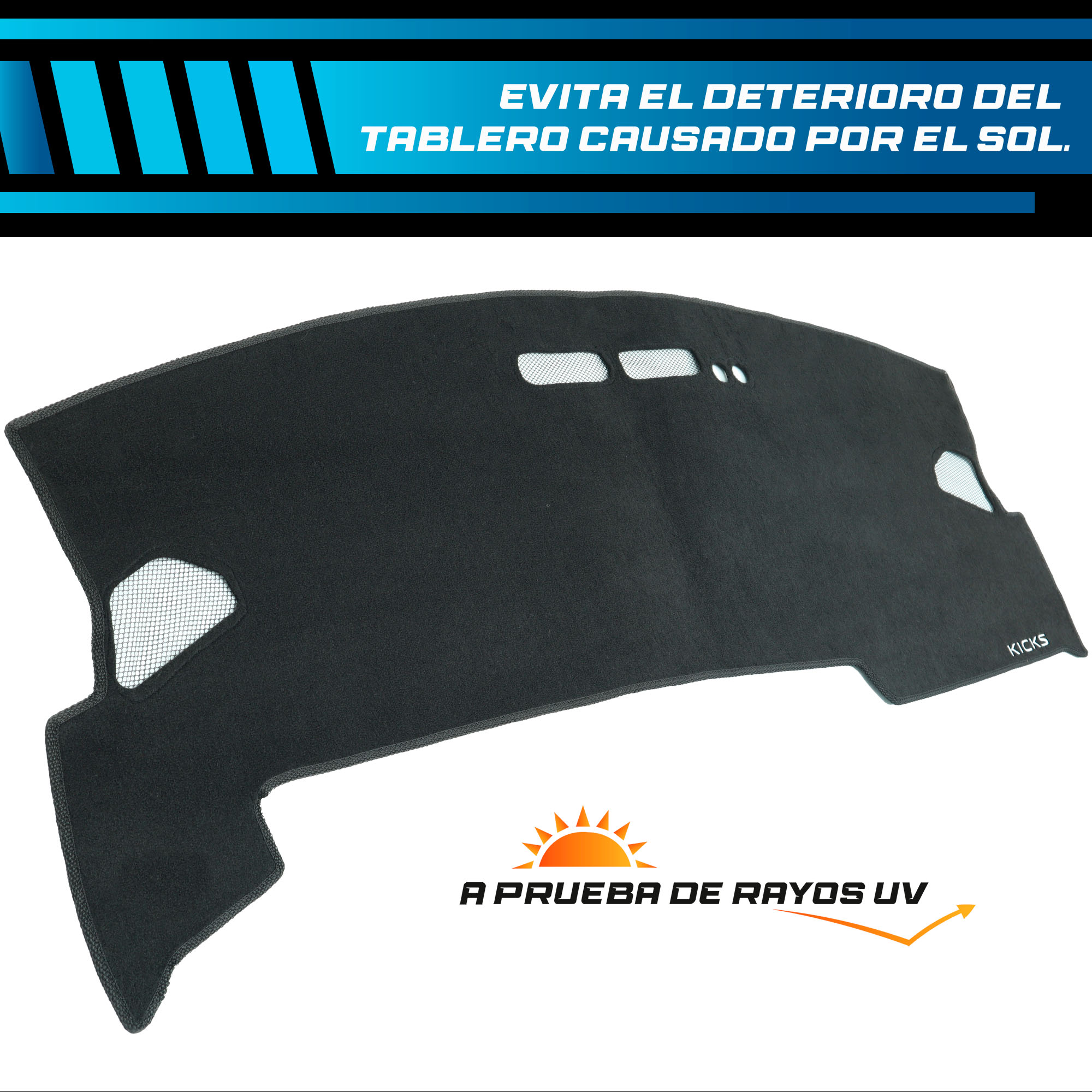 Fabricado con alfombra 100% automotriz de alta calidad, este cubre tablero para NISSAN KICKS termoformable se amolda a la forma original de tu vehículo, ofreciendo un ajuste preciso y un acabado profesional.