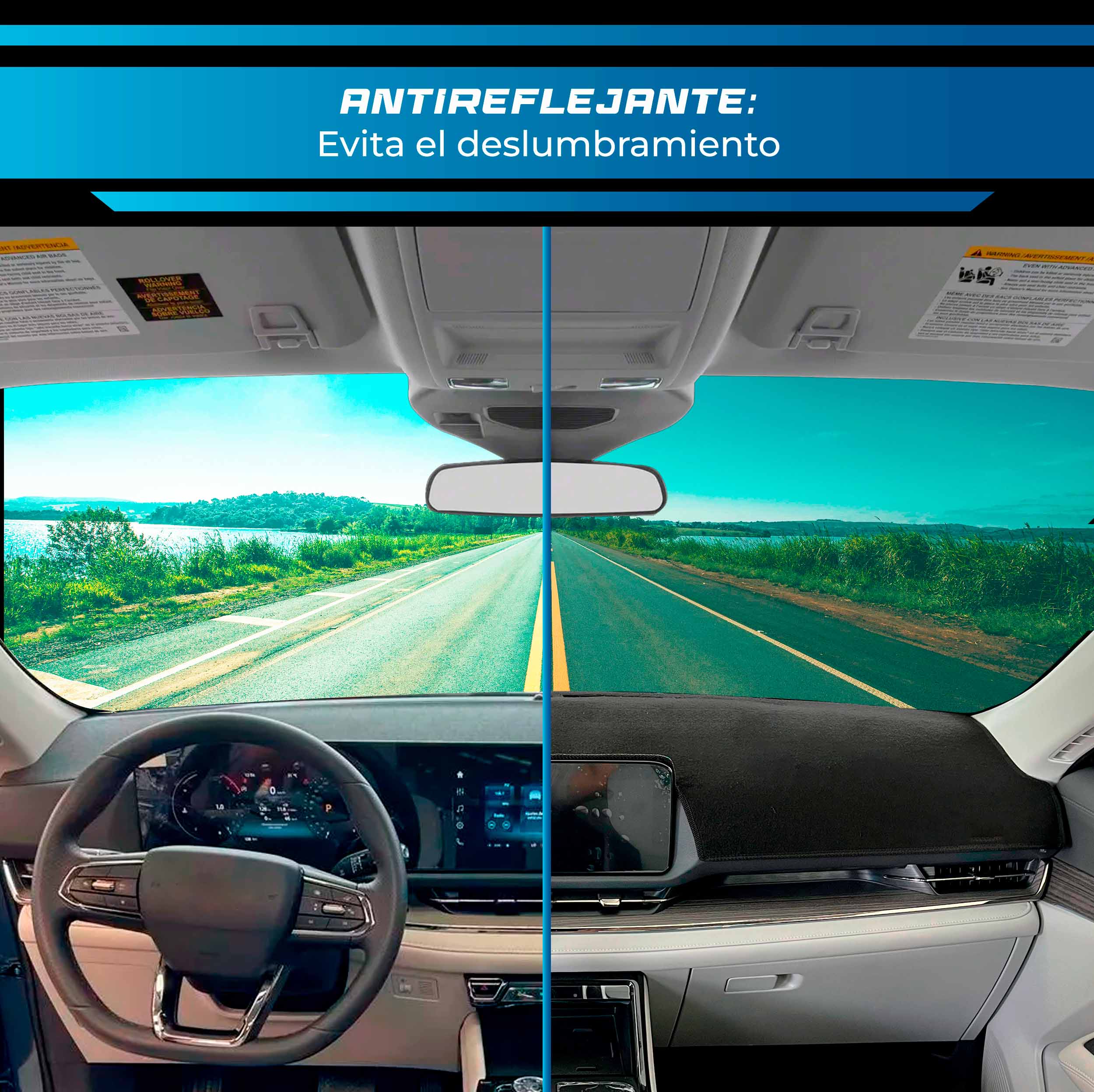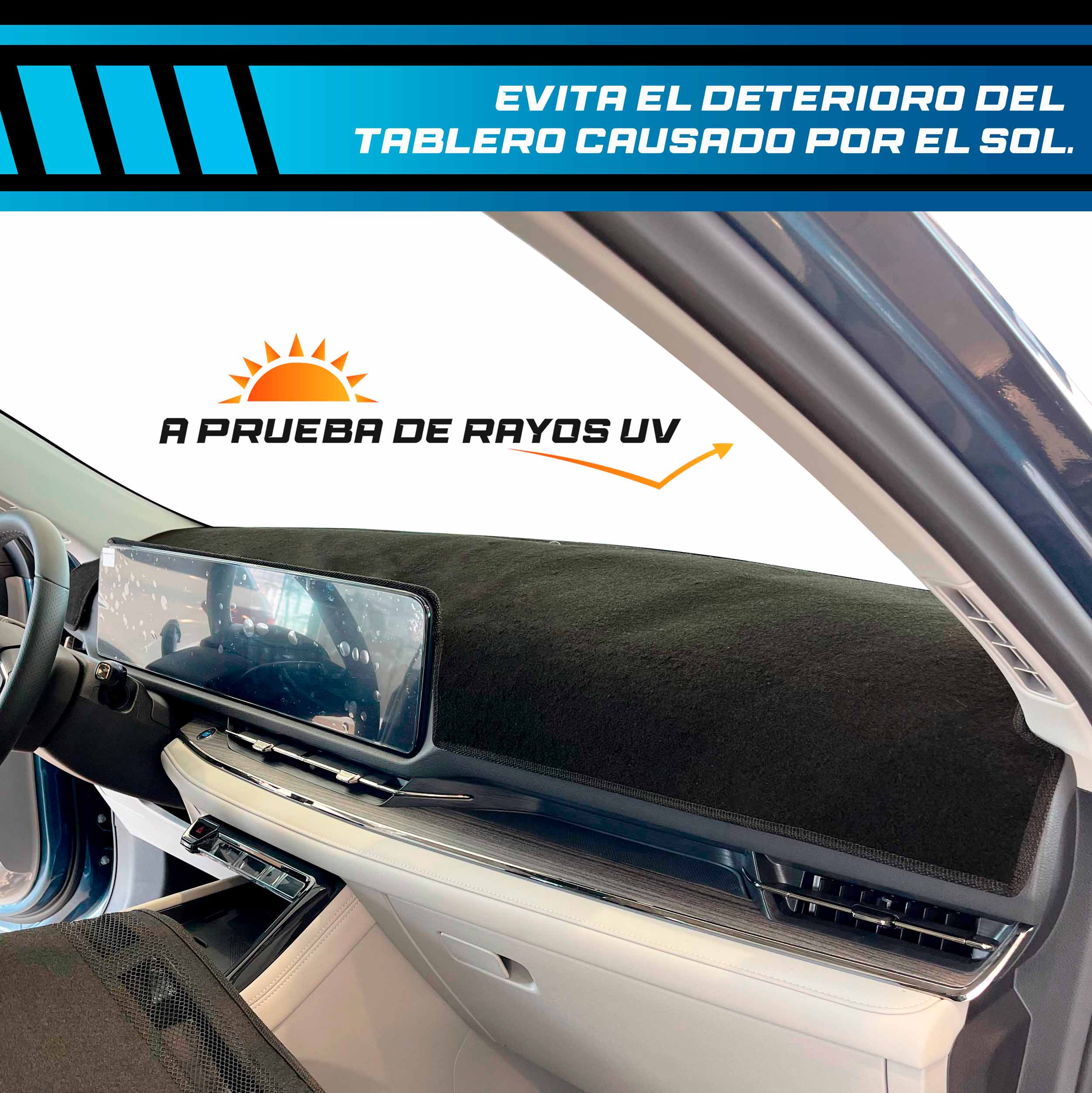 - Protege y embellece tu tablero: Evita daños por sol, polvo y rayones, alargando su vida útil. Elimina los molestos reflejos en el parabrisas para una conducción segura.