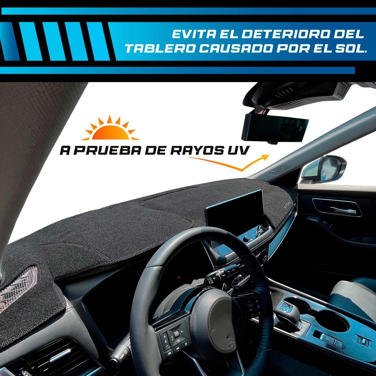 - Protege y embellece tu tablero: Evita daños por sol, polvo y rayones, alargando su vida útil. Elimina los molestos reflejos en el parabrisas para una conducción segura.