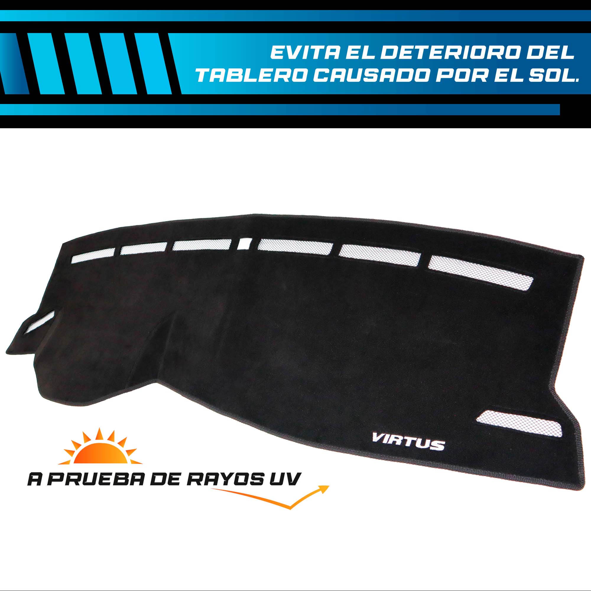 Fabricado con alfombra 100% automotriz de alta calidad, este cubre tablero para VOLKSWAGEN VIRTUS (SIN CORTE PORTA CELULAR) se amolda a la forma original de tu vehículo, ofreciendo un ajuste preciso y un acabado profesional.